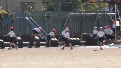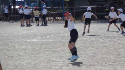穏やかな日差しが降り注ぐ中、2年生が校庭いっぱいに広がって体育をしていました。