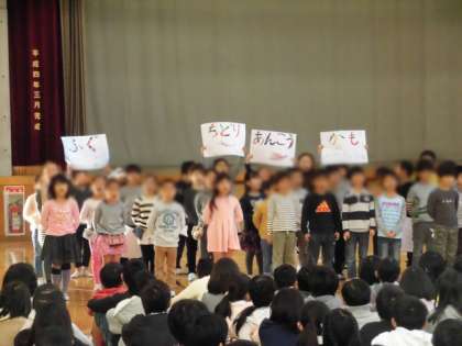 「はる なつ あき ふゆ」の詩には、海の魚や他の生き物がたくさんでてきました。1年生は、それらを間違えることなく元気いっぱいに暗唱することができました。