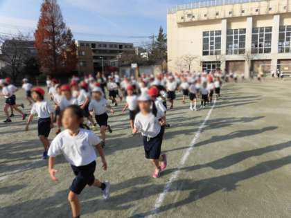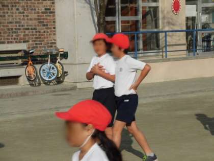 持久走月間が今日から始まりました。中休みに、低学年、高学年に分かれて1日ごとに5分程度走ります。