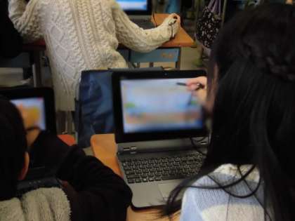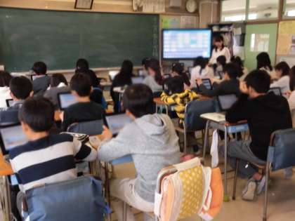 2学期の学習のまとめに入っている6年生が、タブレットを活用してたくさんの問題を解いていました。いろいろな活用方法を試しています。