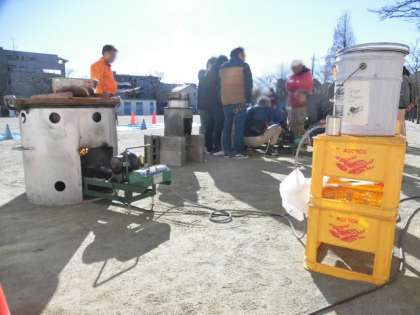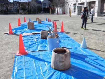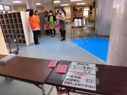 PTAの皆さんや、おやじの会、ザ サンダー、玉堤コミュニティー、そして都市大生ボランティアや尾山台中学校の先輩の皆さんが集まってくださり、8時30分ころから準備が始まっています。