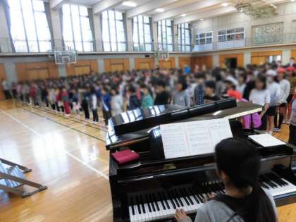 最後に先週の音楽朝会で歌った「世界が一つになるまで」をもう一度歌いました。歌で始まる一日は、とてもすてきです。
