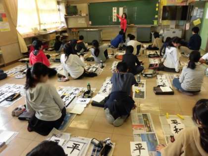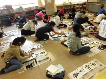 年明けの書初め大会に向けて、さっそく書初めの練習が始まっています。各学年とも冬休みの課題にもなっています。