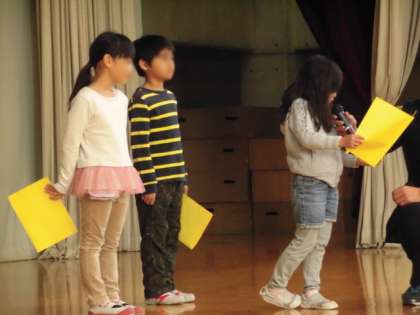 そして、1年生の代表3人のお友達が2学期頑張ったことや、3学期の目標を発表しました。3人ともしっかりと自分の思いを発表することができました。
