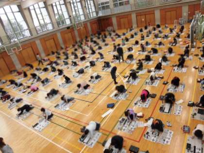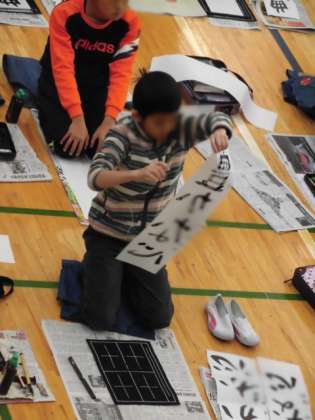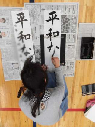 3・4校時は、5・6年生が体育館で書き初めをしました。5年生は「豊かな心」、6年生は「平和な春」です。🎵春の海🎵が雰囲気を高める中、みんなは落ち着きと集中力をもって取り組んでいました。さすが高学年です。