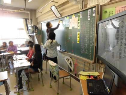 今日の午後は、先生方が各校で行われる世田谷区の小学校の研究会に参加しました。玉堤では、6年2組で学級活動の研究授業を行いました。他校の先生方も大勢参加してくださいました。「卒業プロジェクト(まずは学級編)の内容を決めよう」が議題でした。