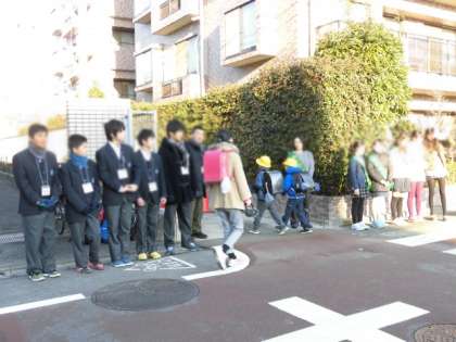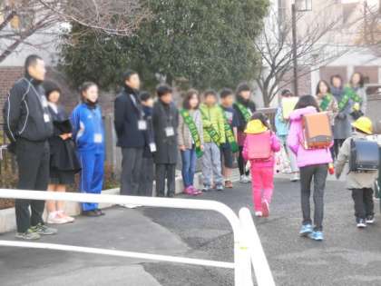 昨日よりも、元気な声が聞こえてきています。駐在所からもいらしてくださっています。尾山台中学校の先輩も11人参加してくれました。寒い朝でしたが、心は温かくなりました。