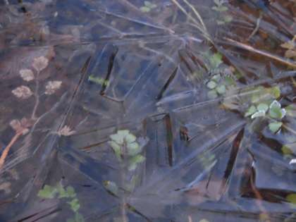 冷え込みが厳しい朝。この冬、初めてビオトープに氷が張っているのを見付けました。冬らしい1日の始まりです。