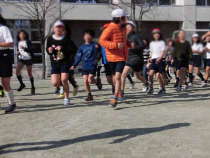 12月10日から始めた持久走月間は、今日が最終日でした。中休みは4〜6年生が走りました。子どもたち一人ひとりが目標をもって取り組んできました。
