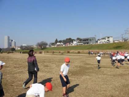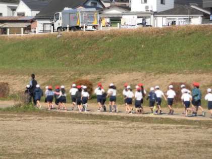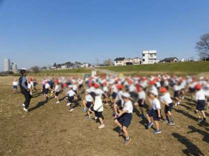 写真は1・2年生です。今日は1年生と2年生が一緒にスタートしましたが、1年生は距離が短いので先に終わりました。「もっと走りたい」という声も上がっていたようです。