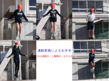 持久走と同じように、一人ひとりが目標をもち、それを達成できるよう毎日少しずつでも練習を重ねることが大切です。なわ跳びも全身を使うよい運動です。練習することで技も上達していきます。