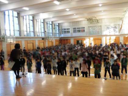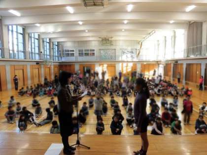 「日本語」発表の後は、全校朝会です。