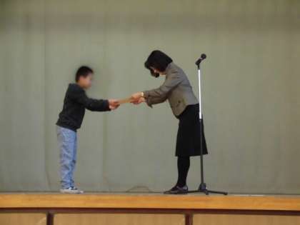 そして、表彰です。世田谷区の図工展に出展されたお友達と、柔道大会で準優勝したお友達です。図工展には、3000名以上の方々が鑑賞してくださったそうです。おめでとう。