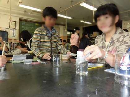 グループで協力しながら、とても意欲的に実験を進めていた立派な5年生です。