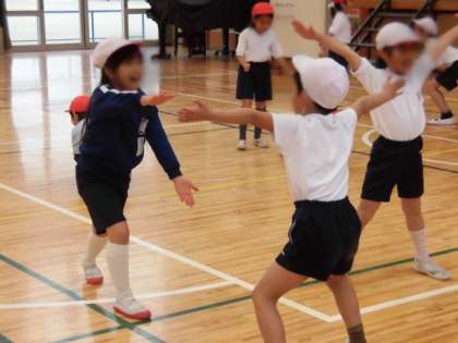 フラフープは一人で楽しんだりお友達とグループで楽しんだりしました。どんな遊び方ができるか相談し、工夫することもできました。