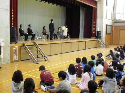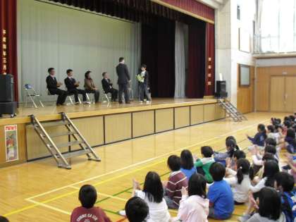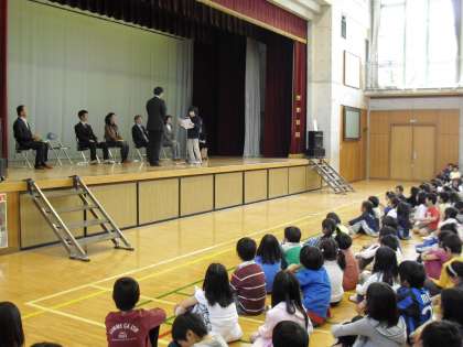 今年度の離任式が、玉堤小学校を離れられた、校長先生をはじめ、先生、主事の方をお迎えして体育館で行われました。いろいろお世話になりました。