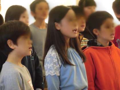 発声練習を済ませ、1月の音楽集会の「すてきな友達」を歌いました。そして、2月の「旅立ち」の練習をしました。