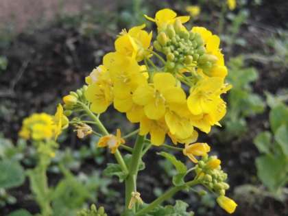 立春が過ぎたとはいえ、朝晩はまだまだ寒いです。今朝もビオトープに氷が張っていました。しかし、菜の花がもう咲いています。