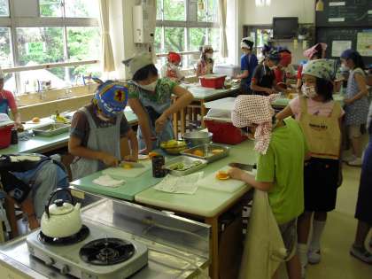 初めての調理実習5年1組