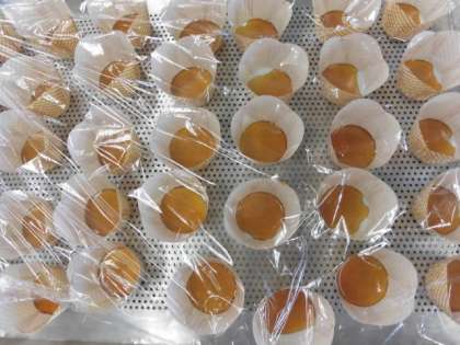 給食室で作ったプリンは大人気でした。カラメルソースは苦味を抑えて、プリンは甘さ控えめに作りました。給食室には、90度で蒸せる機械があるので「す」がたたずにとてもなめらかに蒸し上げることができます。