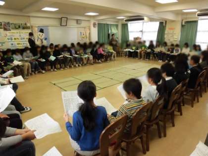 学校運営委員会の委員でもある豊田さんの茶室を来週お訪ねして茶道の体験をします。今日は、その事前授業でした。