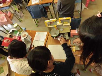 空き箱や、使い終わったカップなど様々なものをおうちから持ってきて作った「住んでみたい家」。プールやエレベーター、秘密の部屋など様々なものがあるすてきな家ができました。そして、今日は、お友達の家を訪問して遊びました。みんな、本当の家を訪問しているようでした。