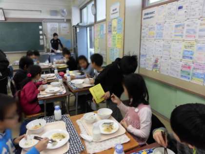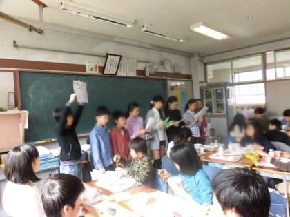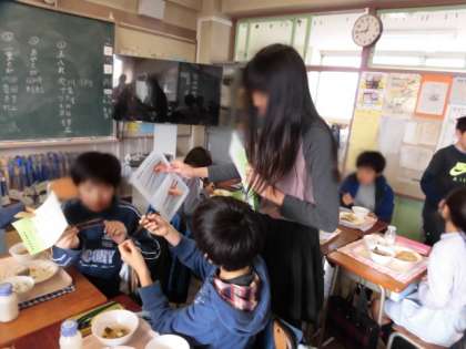 保健給食委員会が、給食時間にはしの持ち方を見て、持ち方の正しい人に賞状を渡しました。今週と来週で各クラスをまわります。