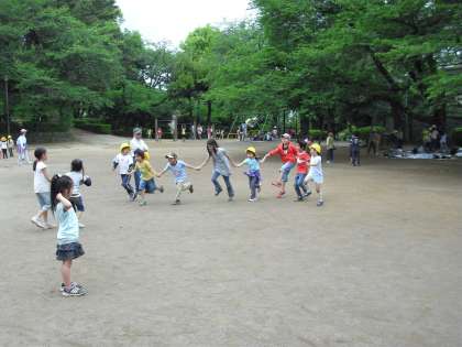 多摩川台公園に着いてから、1.2年生のグループ別に遊びました。「始めの一歩」「鬼ごっこ」「氷おに」・・・いろいろな遊びを2年生が中心に考え、1年生をリードして楽しく遊ぶことができました。2年生がリードする姿は立派でした。