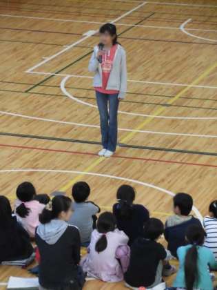 家庭科クラブとテーブルゲームクラブの発表と終わりの言葉です。