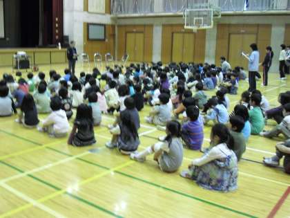 1年生は、2年生と一緒にビデオを観て、警察の方のお話を聞いた後、実際に校外を歩きました。集団で歩くのは、遠足に続いて2回目です。しかし、みんなで真剣に歩きました。
