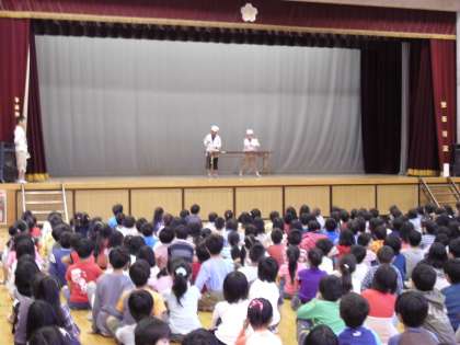 今日は、「間違い探し」と題して、2コマのシーンの違いを当てるクイズの集会でした。集会委員会の子どもたちが、給食の配膳や登校、授業の場面などを考え、それぞれ数か所違いを考えて行いました。低学年の子どもたちから高学年の子どもたちと楽しく行えた集会となりました。