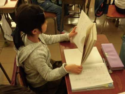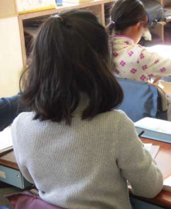 とても良い姿勢で、文字を書いたり、音読をしたり、お話を聞いたりしていました。すばらしいです。
