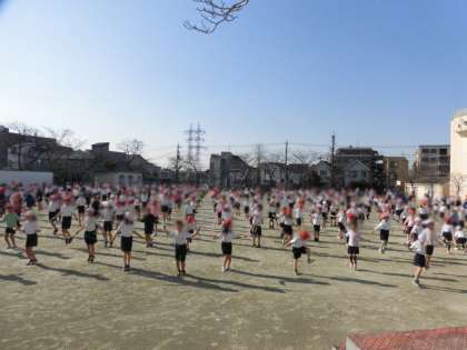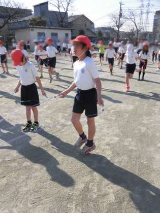 短なわ跳びをしました。持久走月間が終わってから始めた短なわ跳びは、1か月になります。最初に比べ子どもたちはとても上達しています。休み時間もたくさん練習していました。