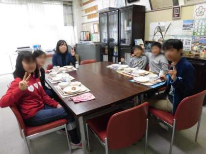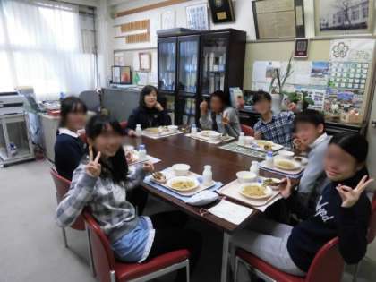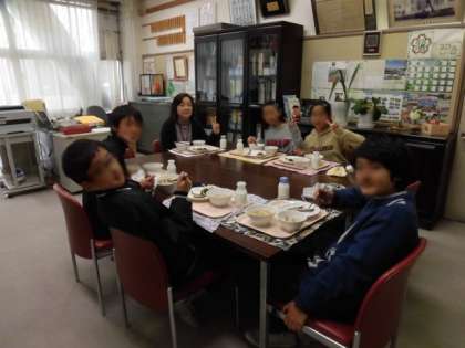楽しそうな声が聞こえてきます。6年生と校長先生の会食です。