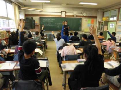社会科の学習で、6年生は国連について、4年生は東京都がスポーツや文化でも諸外国とつながっていることを学んでいました。