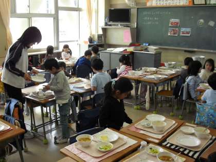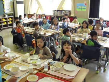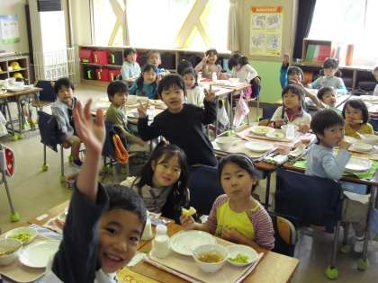 1年生も学校生活に慣れてきました。楽しみの給食も配膳や片付けも上手くできるようになってきました。今日の給食の時間も「美味しいよ」「たくさん食べました」と元気に答えてくれました。