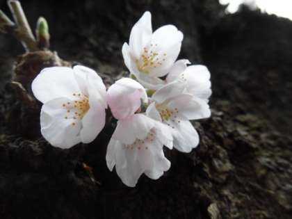 校舎の北側の桜が開花しました。東京の開花予想より早かったと思います。三寒四温といいますが、今年は、暖かい日がとても暖かかったことも影響しているのでしょう。校庭の桜の芽も膨らんでいます。卒業式には学校中の桜が咲いていることでしょう。