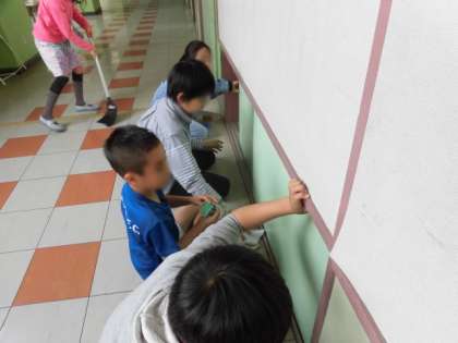 1年間お世話になった教室や廊下、机、いす、靴箱……。普段はできないような細かいところまで丁寧に掃除をしました。「ありがとうございました」そして「次の学年のお友達に気持ちよく使ってもらおう」という気持ちを込めて。