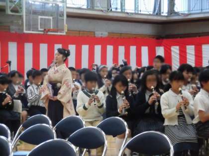卒業生の表情には、巣立ちの喜びがあふれていました。誇らしげで輝いている6年生の姿に参会している皆様からは、温かい拍手が送られていました。在校生を代表して参加している5年生も、6年生へのおめでとうの気持ちを込めて、入場曲を演奏していました。