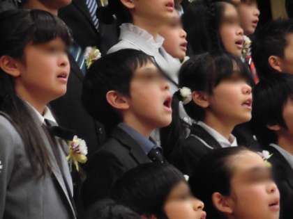 6年生の「最後のチャイム」から5年生の「大空を迎える朝」へ、そして6年生の「旅立ちの日に」へと素晴らしい合唱が続いていきました。