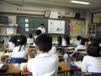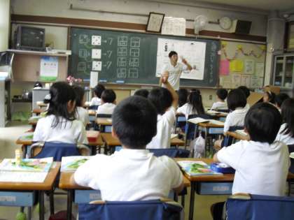 1時間目に1年生の算数の学習で「いくつといくつ」が行われました。学習の態度もよく「はい、5と2で7です。」と答えていました。また、おはじきを使って、自分一人でいろいろな数の構成を考えていました。とても一所懸命に学習していました。