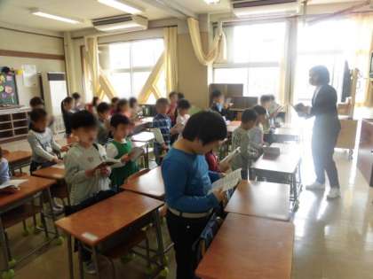 1年生も「1年生を迎える会」で歌う歌を練習しています。1年生が歌う、「さんぽ」と全員で歌う「ビリーブ」です。体育館にみんなの声が響くことを楽しみにしています。
