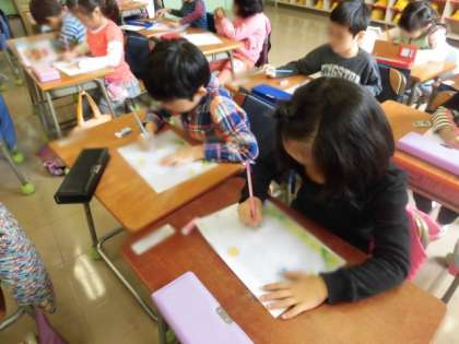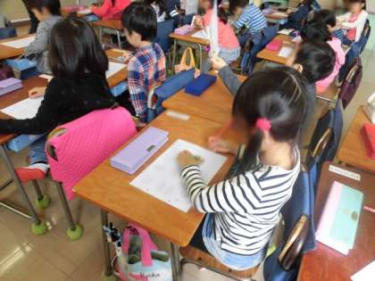 良し姿勢で書いているお友達が大勢いました。姿勢は大切です。文字も上手に書けるようになりますし、背中の筋力を高めることにもつながります。