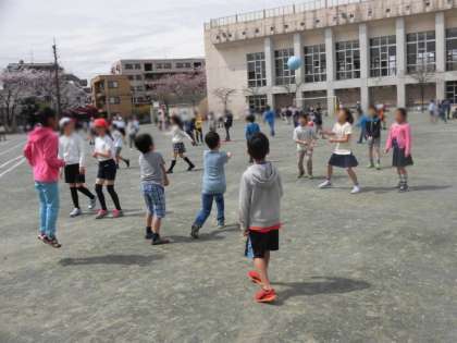 1年生は下校しましたが、2年生から6年生までは、中休みを元気いっぱいに校庭で楽しみました。各クラスのボールの数や種類を増やしたので昨年度までとは違った遊びを楽しむこともできるようになりました。ボールに触れる機会も多くなります。ボールを投げることも多くなるでしょう。元気に外で遊ぶことは、体力の向上にもつながります。