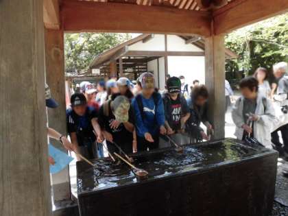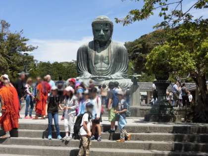 裏大仏ハイキングコースを、各チェックポイントを通過しながらすすみ、ゴールは長谷の大仏です。気持ちの良い天候で、新緑の源氏山公園から尾根道を歩き、階段を下りて大仏前に到着。