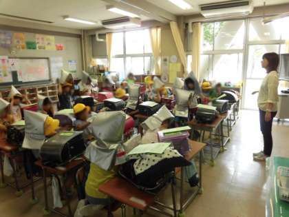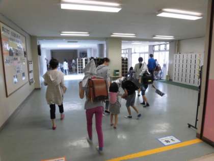 子どもたちは、まず放送の指示に従って、落ち着いて帰りの支度をしました。そして、校長先生から「静かに引き取りを待つこと」「家に帰る途中も危険な場所がないか確かめること」とお話していただきました。