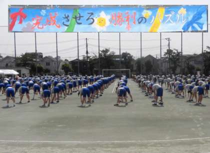 「完成させろ 勝利のパズル」のスローガンの下、生徒が中心となって運営し、心を1つにして競技に挑んででいる姿は、躍動感にあふれていました。クラスの応援旗のコンテストもありました。