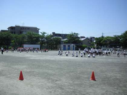 夏を思わせる今日、1・2年生は、運動会の競技の「玉入れ」の練習をしました。入場から整列、競技と行いました。暑い日でしたが、元気に練習をしました。当日、赤、白頑張ります。