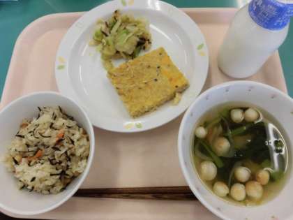 今日は大豆に切り干し大根とよくかんで食べる食材が多くふくまれていました。よくかんで食べる習慣を身につけてほしいと思います。