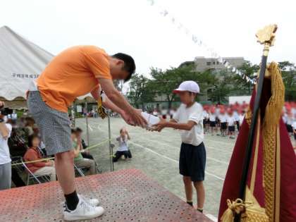(閉会式1) 得点発表、優勝旗授与、来賓の話・記念品贈呈